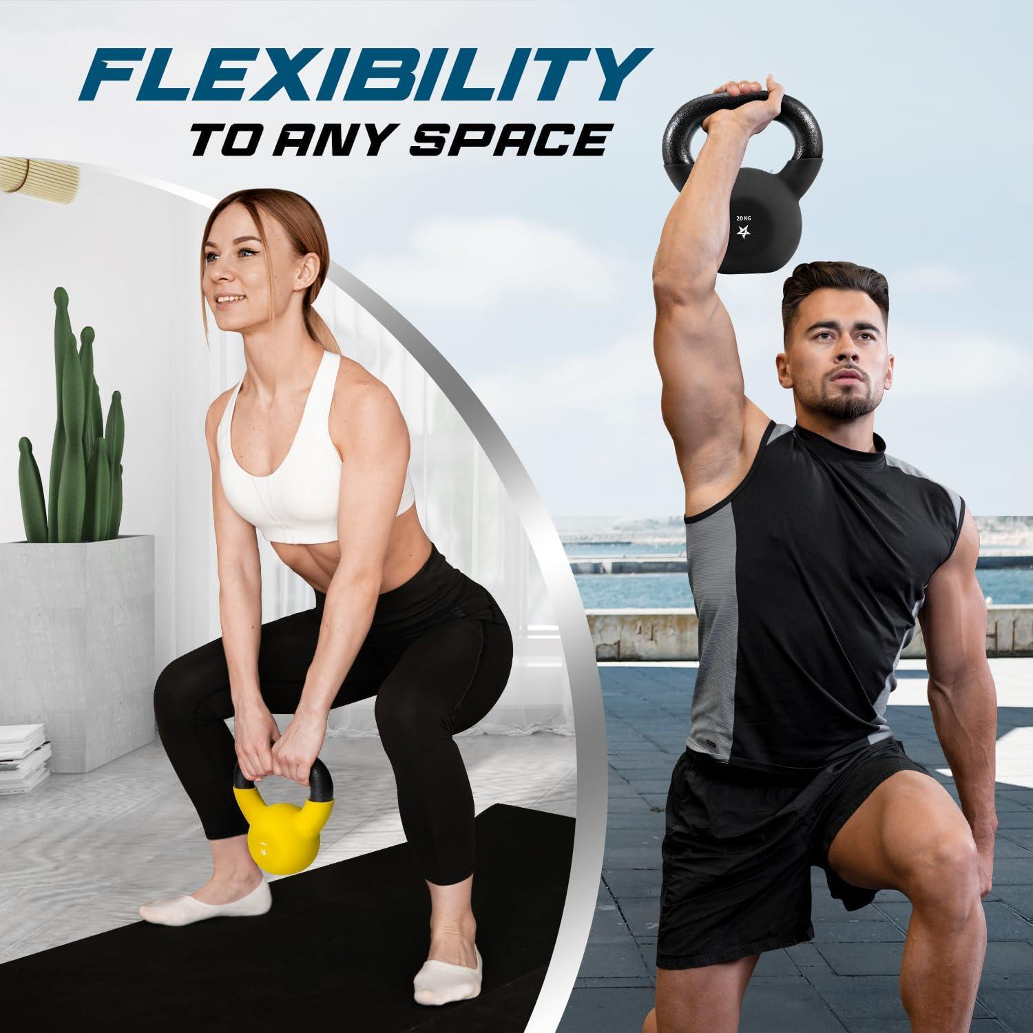 VERSATILE WEIGHT OPTIONS: Easily distinguishable weights ranging from 2 to 20 kg make our multicolor kettlebells great for home gym fitness and weight training purposes and adapting to goals