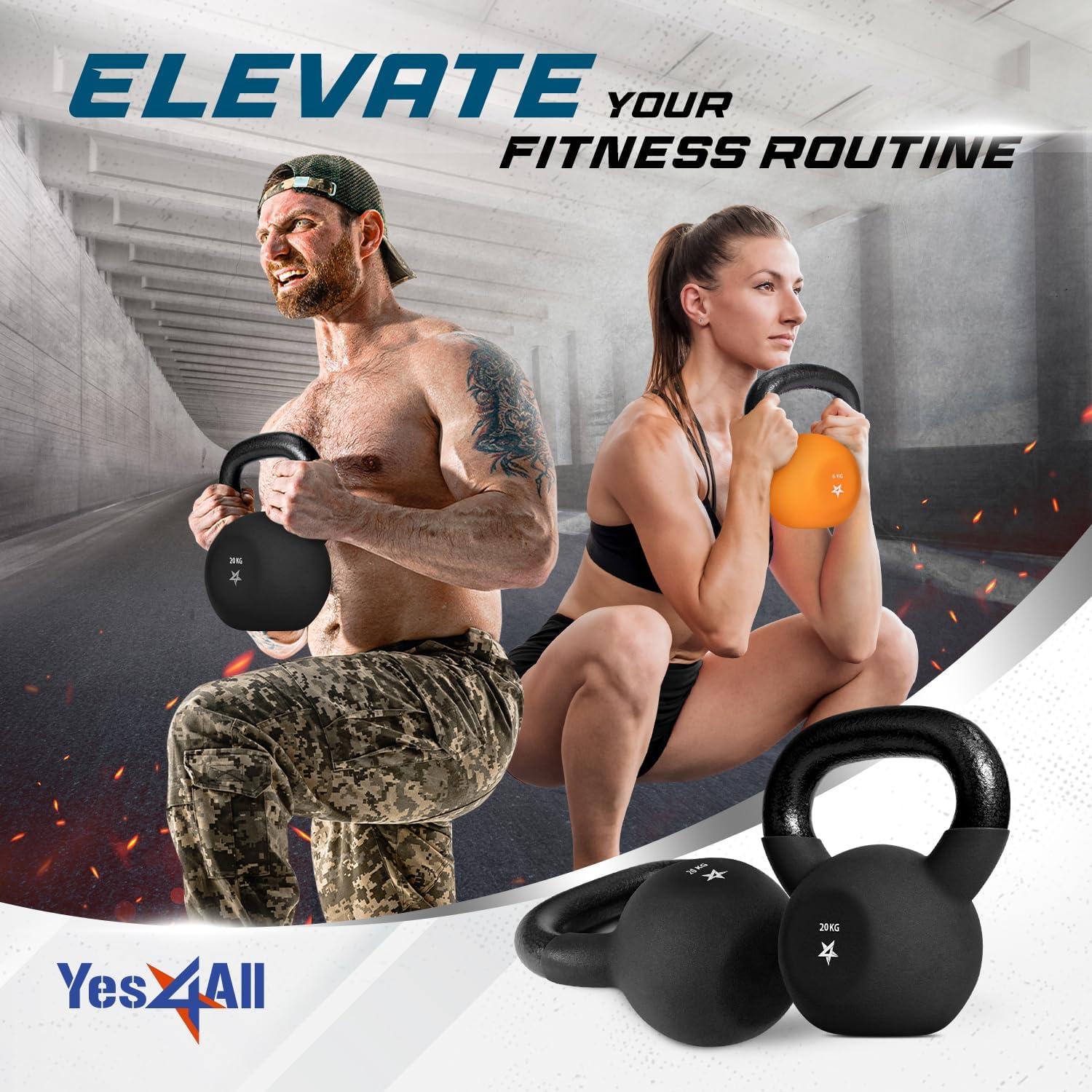 Yes4All 2-20kg Neoprene Coated Cast Iron Kettlebell, Kettle Bell Weight Sets for Home Gym Fitness & Weight Training – Multicolor Kettlebells(H. 20 kg)