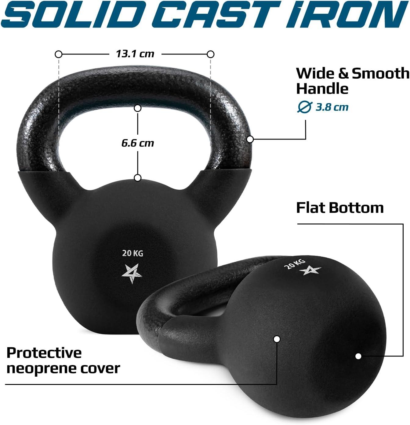 SOLID CAST IRON CONSTRUCTION: Made of solid cast iron, our kettlebell is extra durable and can withstand intense workouts to help you achieve your fitness goals