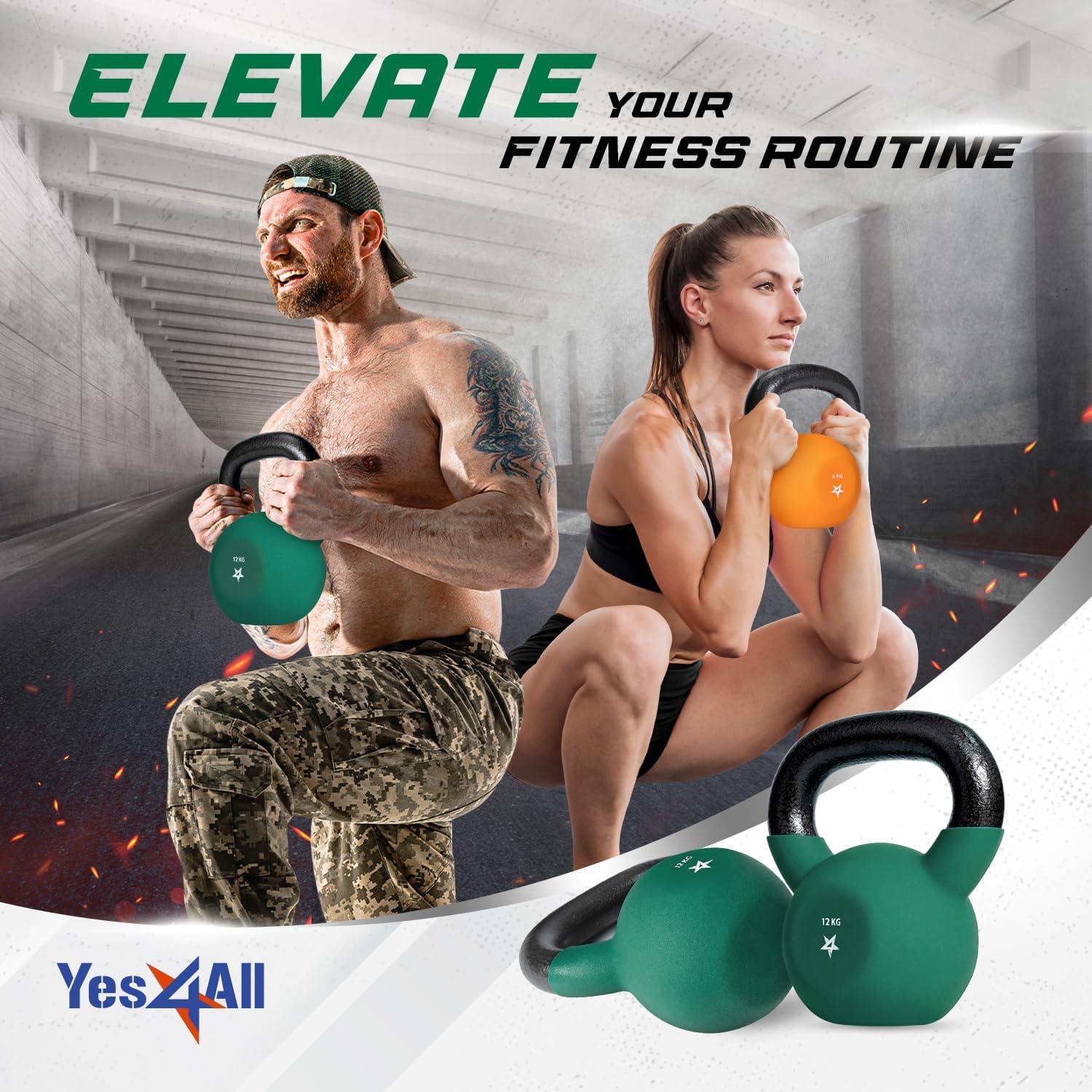 Yes4All 2-32kg Neoprene Coated/Powder Coated Kettlebells Cast Iron, Kettlebell Weight Sets for Home Gym Fitness & Weight Training(F. 12 kg)