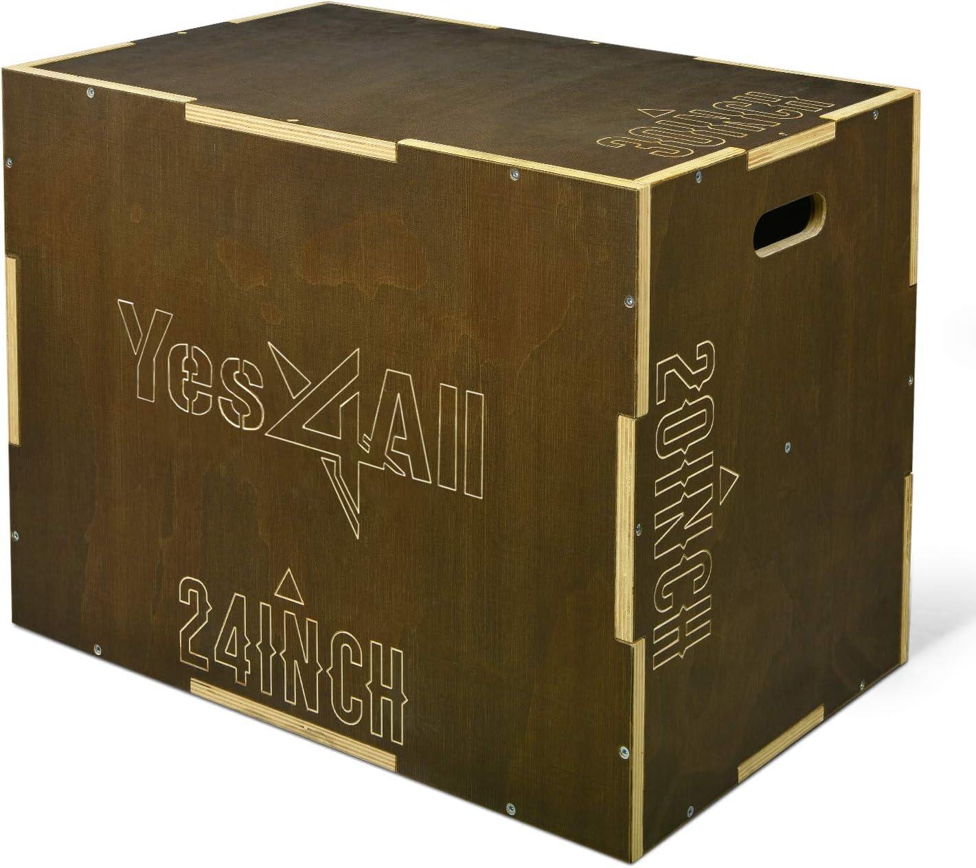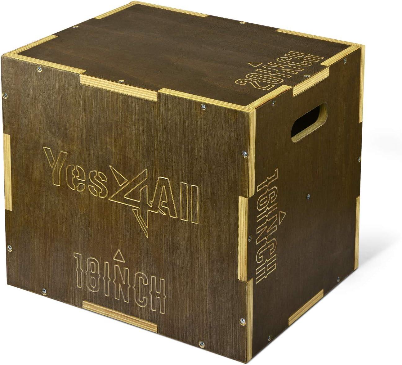 Yes4All Plyo Box, 3-in-1 Wooden Box Jumps for Home Gym, 450 lbs Boxes Step Up with Smooth Edges & Wide Built-in Handles for Jumping, Strength Training, Lunges, Squats, Dips(C. Wood - Moss Brown)